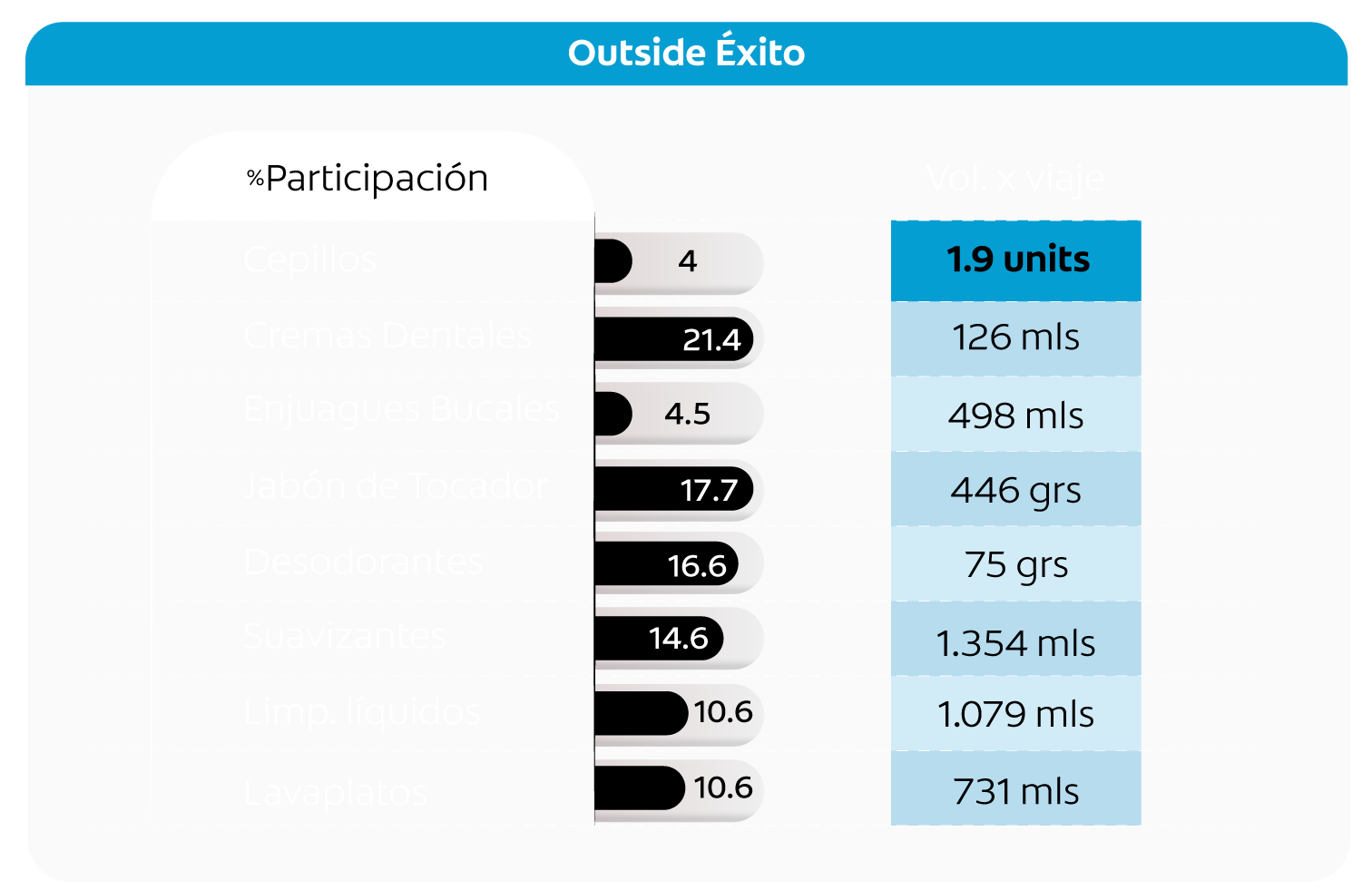El comprador de Éxito, cuando compra fuera del canal, visita Tiendas D1 y minimarkets y tiene en promedio tickets más bajos que los que están dentro del canal